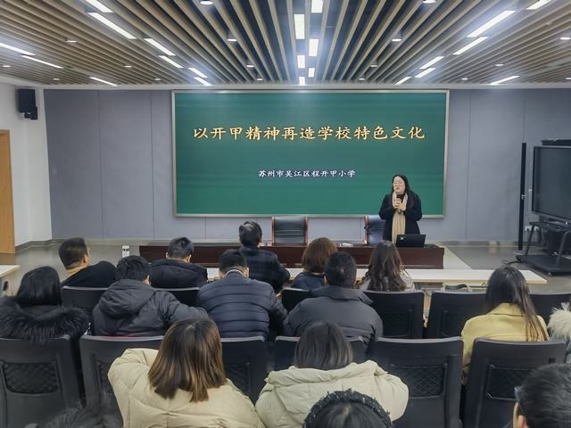 随后,周菊芳副校长以“以开甲精神再造学校特色文化”为主题开展讲座。她从“开甲精神:铸魂学校特色文化”“场景革命:形塑学校特色文化”“生活设计:演绎学校特色文化”三方面进行详细介绍,展示了程开甲小学丰富的特色文化。