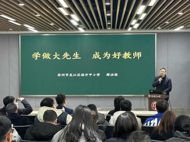 接着,薛法根校长作题为《学做大先生 成为好教师》主题讲座。薛校长提出,办好学校的三个关键在于教师队伍、课程产品和管理方略,学校需要锻炼一支极具凝集力和纪律性的教室团队。