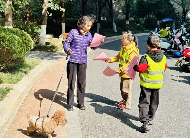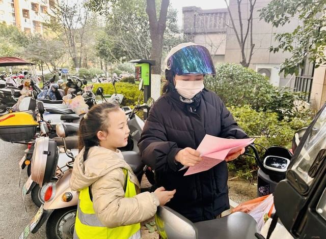 志愿者们走进城中花园小区,向居民朋友发放消防安全宣传单,耐心地向来往的居民朋友介绍预防火灾的措施和逃生自救的技巧,提醒居民们要消除消防安全隐患,提高消防安全意识。在小区保安叔叔的带领下,小小志愿者们来到地下车库,对乱停放的电瓶车主进行劝导,在无人的电瓶车上粘贴劝导单。志愿者们还向居民朋友们发放垃圾分类宣传材料,讲解垃圾分类的知识,做绿色传播者,用力所能及的方式为绿色环境助力,一起创建绿色家园。