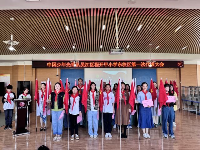 2024年10月18日上午,吴江区程开甲小学东校区第一届少代会在三楼报告厅隆重召开,参加会议的人员有金洁萍副校长、朱雪琴主任、沈卫琴主任、张军副主任、大队辅导员沈叶、全体中队辅导员、大队委成员以及部分少先队员代表。