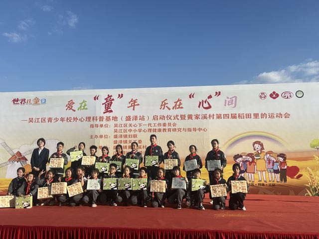 11月6日,吴江区青少年校外心理科普基地(盛泽站)启动仪式暨黄家溪村第四稻田里的运动会活动隆重举行,程开甲小学的少先队员代表参加了此次校外实践活动。