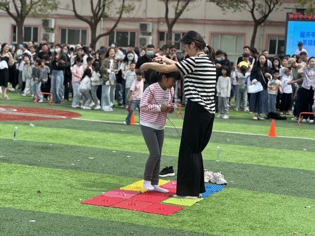 活动现场,蒙眼互牵游戏中,孩子们小心翼翼地引导蒙眼的家长跨越障碍。家长们虽眼前漆黑,却因孩子坚定的小手,满是信任。这一刻,孩子成为家长的“眼睛”,勇敢担当;家长则全然托付,感受着孩子的成长。而在合作跳绳游戏里,家长与孩子默契配合,欢声笑语中,亲子间的情感迅速升温。