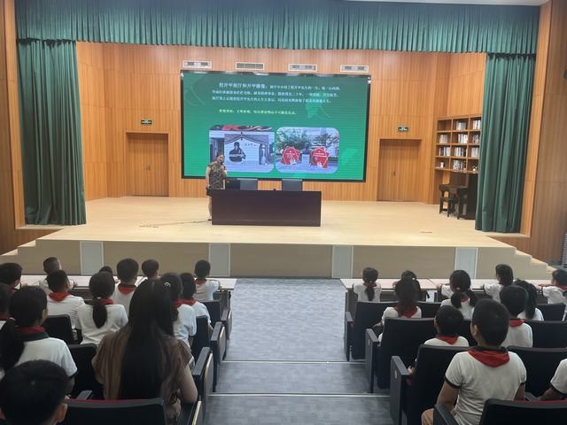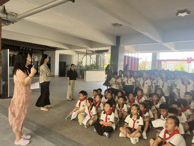 孩子们坐姿端正,认真聆听校园介绍,跟着讲解了解校园的每一处角落。手持“校园导览图”的孩子们,在班主任与班辅导的带领下,沿着专属路线开启校园探索之旅。从充满书香的图书馆、承载校史的盛川校史馆,到致敬英雄的程开甲展厅与塑像,再到充满活力的操场、绿意盎然的阡陌园,每到一处,老师都会细致讲解,孩子们不时驻足观察,好奇地提问,校园里回荡着清脆的笑声与求知的话语。
