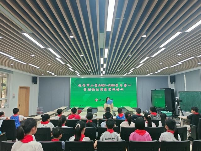 为深入践行雷锋精神,强化学生自主管理意识,提升校园文明建设水平,程开甲小学于2025年9月23日上午在一楼报告厅举行了2025~2026学年第一学期校级岗位管理员岗位实践培训活动。本次活动由德育处周芸老师主持,来自四至六年级的90余名“江村娃”志愿者积极参与此次培训。