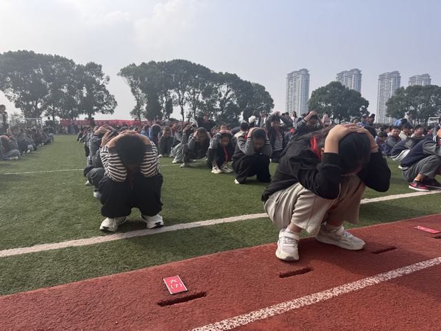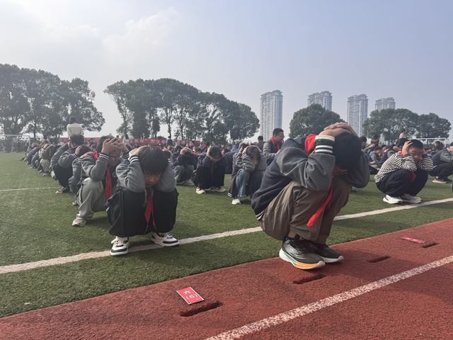 演练前,学校已通过晨会等形式对学生开展了系统的地震避险主题教育,详细讲解“蹲下、护头、抓桌腿”等关键动作要领,明确各班级的疏散路线及演练流程,帮助学生提前熟悉应急程序,强化安全意识。下午13时40分,随着警报声响起,演练正式开始。各班学生在教师的统一指挥下,迅速做出标准避震动作,蹲于课桌旁,护住头部,待“震感”过后,快速整队准备撤离。在班主任和辅导员的带领下,学生按照预设路线有序、迅速疏散。各楼层护导教师提前到岗,在楼梯平台、路口等重点位置引导疏散,确保通道畅通,严防踩踏等意外发生。整个疏散过程组织有序、衔接紧凑,全体师生安全、高效地抵达操场指定区域。演练结束后,学校领导对本次活动进行了总结,肯定了师生在演练中的沉着表现和协作精神,并再次强调常态化开展应急演练的重要意义。讲话中特别指出,只有平时认真演练,才能在真正面对灾害时做到临危不乱、科学应对,切实保障生命安全。