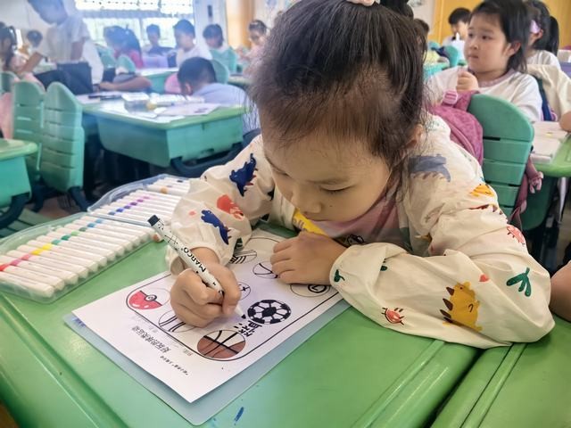 首先,老师带领小朋友们认识了各种各样的球,了解了不同球类的相关运动,通过图片知道了不同球类的玩法,感受到球类运动的有趣。接着,老师带领孩子们通过绘本故事《汤姆踢足球》了解了足球的历史和比赛规则。随后,小朋友们通过五彩的笔画出自己认识的不同球类,表达对球的喜爱。“击掌传球”游戏也深得小朋友的喜爱,大家玩得不亦乐乎。最后,小朋友们来到操场上,进行了双人夹球游戏、“拖拉机”比赛和拍球接力赛,在比赛中练习球的不同玩法。虽然天气有点热,但小朋友们玩得非常开心。