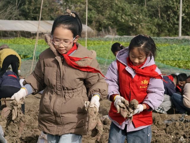 下午,同学们在指定区域内体验了“挖红薯”等农事劳动。大家手持工具,弯腰俯身,亲手挖掘、捡拾,在实践中体会粮食的来之不易,感受劳动的辛苦与喜悦。通过亲身体验,同学们对“劳动创造价值”有了更真切的认知,勤俭节约、珍惜成果的意识也在潜移默化中得到强化。