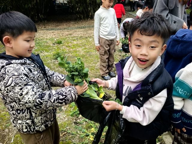 活动现场,同学们手持垃圾袋,在绿油油的菜畦间穿梭。大家弯下腰,小心翼翼地将饱满的青菜从泥土中拔出,有的仔细抖落菜叶上的泥土,有的互相帮忙传递采摘成果,脸上洋溢着兴奋与专注。从辨认蔬菜、学习采摘技巧,到整理收获的青菜,每一个环节都充满了探索的乐趣。老师们在一旁耐心指导,向孩子们讲解蔬菜的生长知识,引导他们体会“一分耕耘,一分收获”的道理。