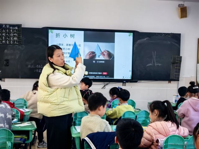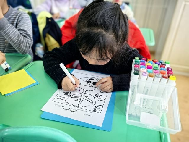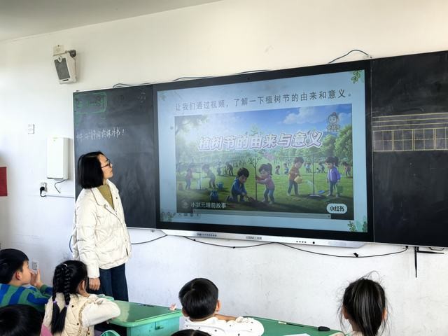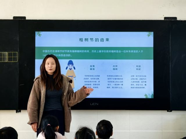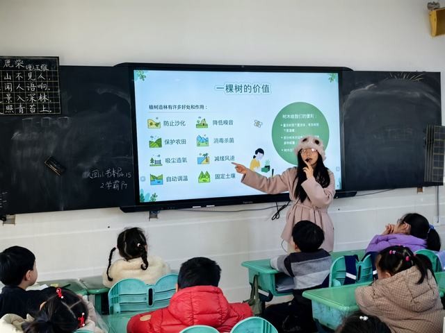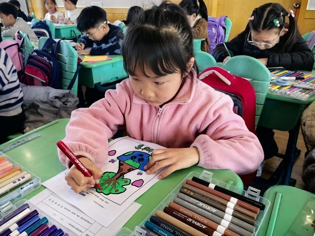 课堂上,老师通过图片、视频和趣味故事,带领学生走近植树节,了解了植树节的起源与意义,学习了世界各地的植树趣事。老师们还讲述了孙中山、习近平总书记等名人带头植树的故事,感受了名人植树的榜样力量,也让学生们感受到植树是人人参与的光荣行动。在“唱绿·舞绿”环节,大家跟着老师学习植树节手势舞,用灵动的肢体语言表达对绿色的热爱。在绘本故事和趣味问答中,孩子们认识了故事中参与植树的小动物,了解了植树节节徽中“5棵树”代表的深刻含义。最后,大家拿起画笔,将心中的植树节画在纸上,用色彩描绘出心中的绿色家园,让爱绿护绿的种子在心底悄然发芽。